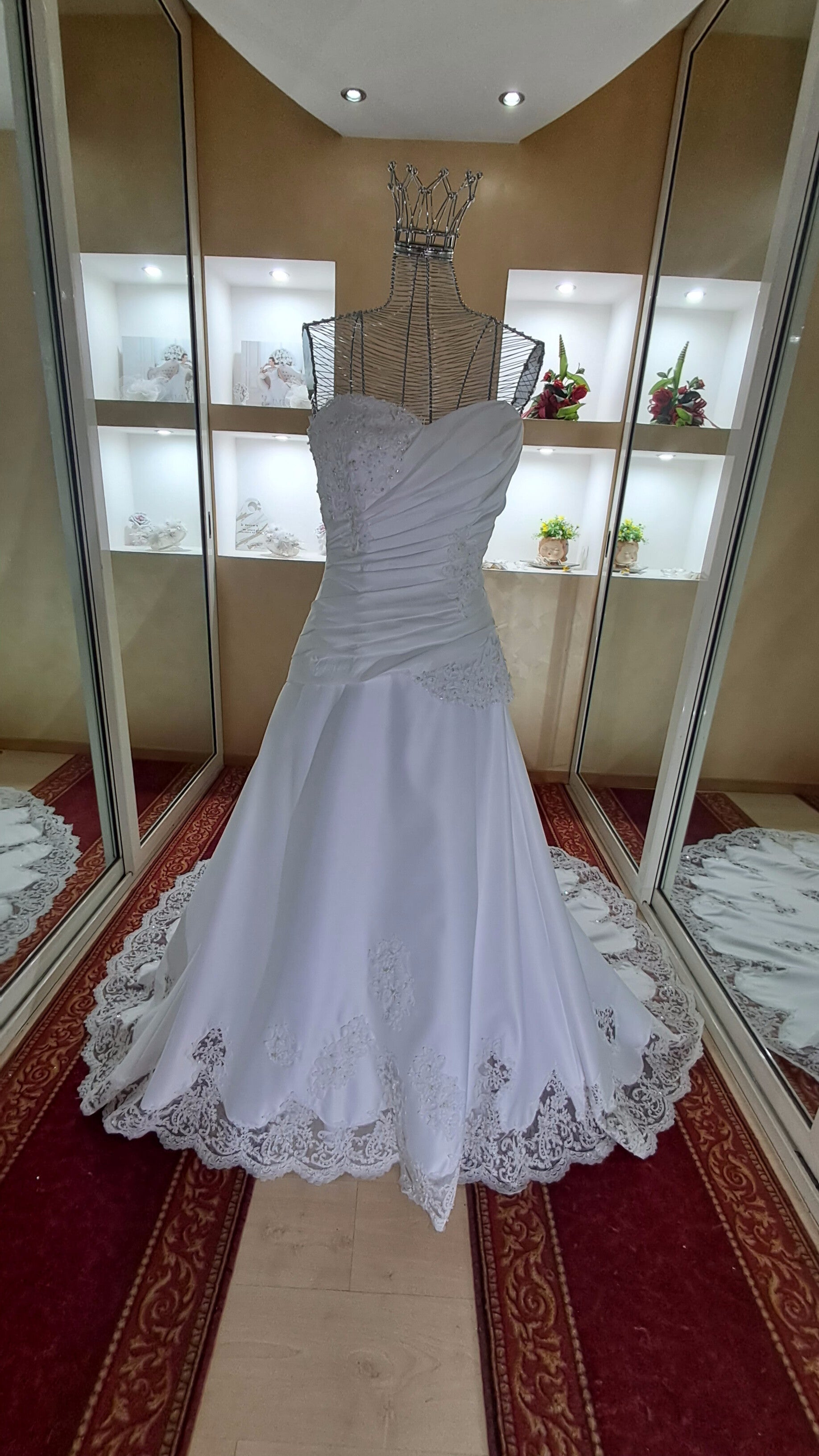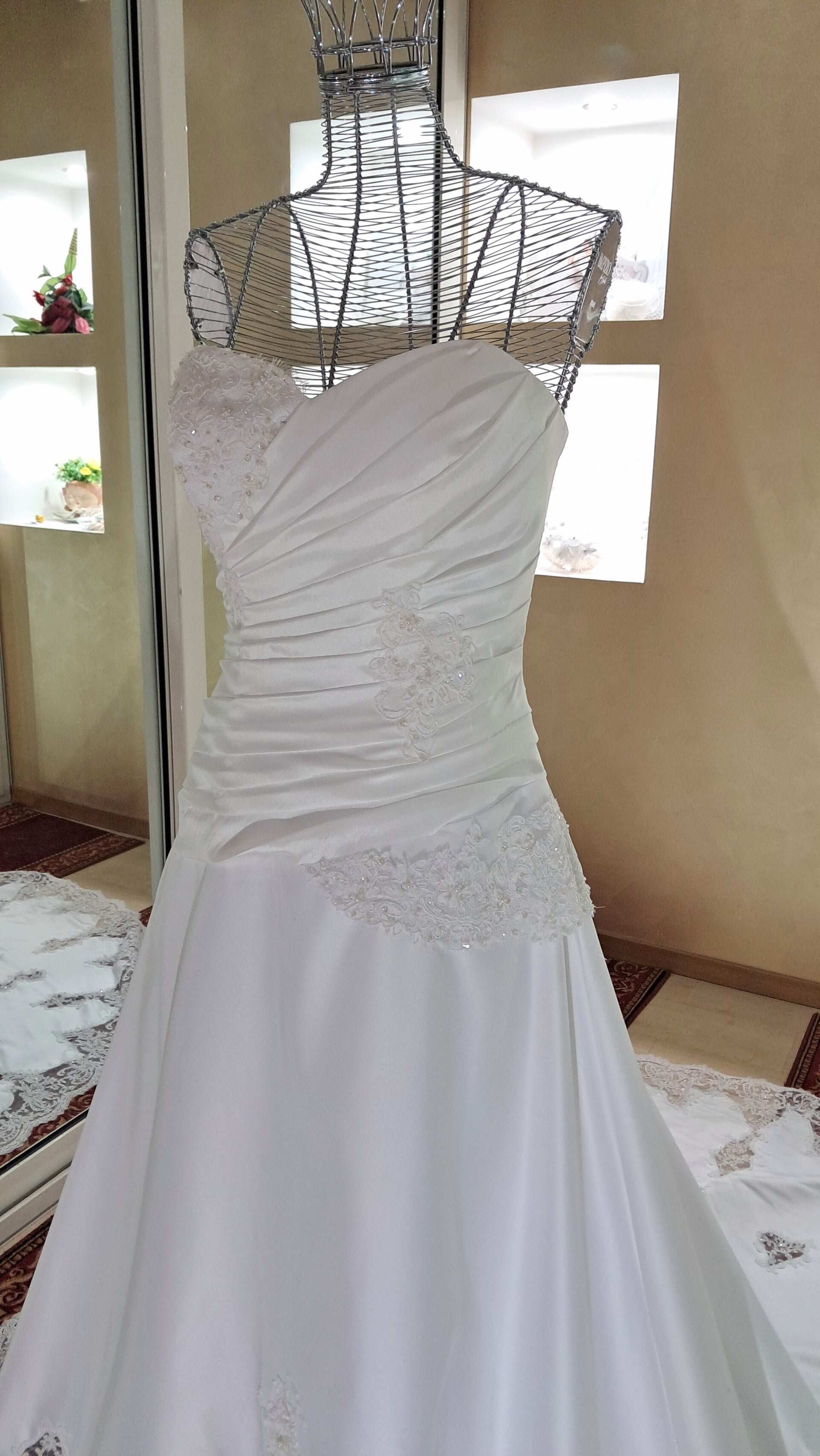 Abito mikado bianco con coda pizzo